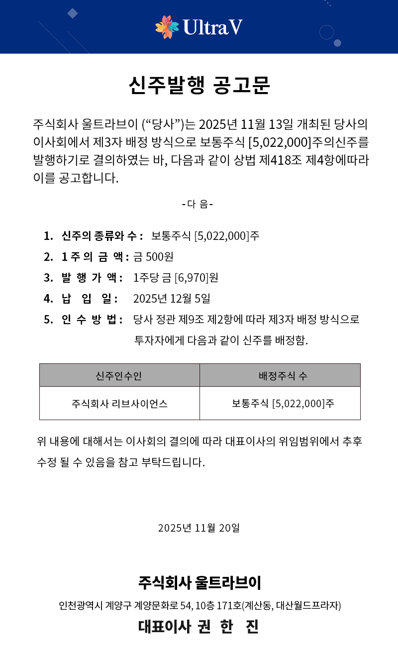 [공지] 신주발행 공고문