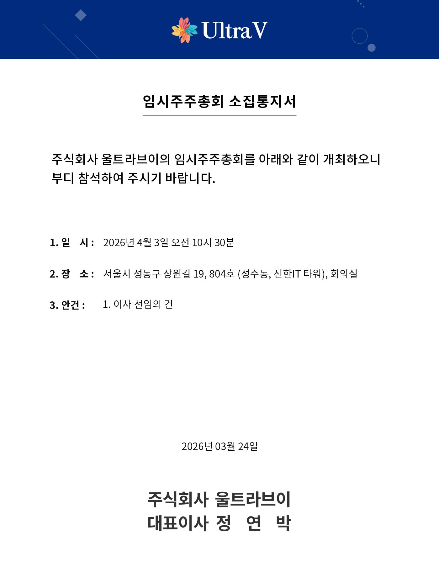 [공지] 임시주주총회 소집통지서