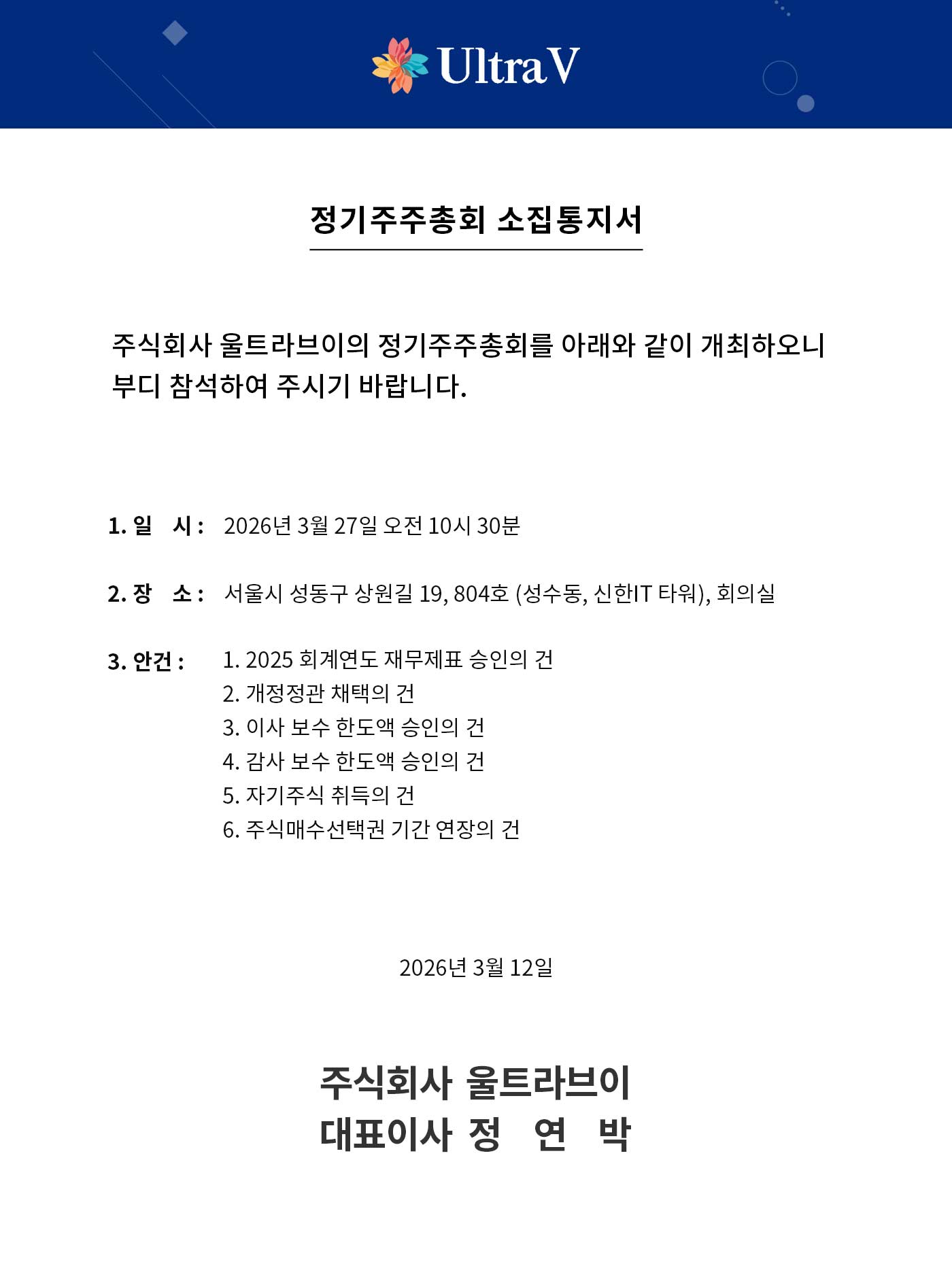 [공지] 정기주주총회 소집통지서